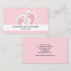 Cartes de visite avec une adorable image d'empreintes de filles roses avec un gros contour blanc et des pois blancs sur un arrière - plan rose derrière l'illustration.