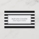 Carte de visite rayé noir et blanc; nom et titre à l'avant, informations importantes sur le contact à l'arrière. Idéal pour ceux qui travaillent dans la mode et la fabrication de goût, les planificateurs d'événements, les designers d'intérieur, les coiffeurs, les maquilleurs, etc.