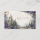 Define your brand with limitless imagination and the magical elegance of a hidden kingdom using this captivating business card. The design transports you to a magnificent, lush fairytale landscape, where a grand stone castle with soaring spires sits majestically on a hill. The scene is framed by dark pine forests and misty mountains, with a winding path leading toward the distance. The entire foreground is lavishly filled with abundant, layered purple, lavender, and blue flowers, creating a vibrant, romantic archway around the edges. The soft, luminous lighting and intricate detail of the foliage and architecture merge to convey a sense of wonder, prosperity, and high-end elegance that makes your card truly unforgettable. This business card is ideally suited for a luxury event planner specializing in themed celebrations or fantasy weddings, a boutique hotelier wanting to convey a magical, unique setting, or a fantasy novelist or game developer seeking distinctive, narrative-driven branding. It would also perfectly suit a fine art print seller focused on mystical or romantic works, or an exclusive floral designer emphasizing rich, abundant arrangements. The card's captivating combination of enchanted scenery and abundant purple florals ensures it is versatile for any sophisticated announcement, a refined gift enclosure, or an elegant invitation.