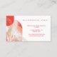 Carte de visite moderne et élégante pour un large éventail d'entreprises, avec notre belle œuvre d'art à l'encre aquarelle rose et rouge abstraite moderne avec des veines dorées en marbrure dorée fausse. Des feuilles de palmier blanches ornent le coin. Les teintes roses douces et feutrées, le corail et le rose-rouge créent un look élégant et moderne. Personnalisez avec le nom de votre entreprise et monogramme. Le verso présente notre belle œuvre d'art à l'encre aquarelle rose et rouge abstraite moderne créée en formes d'arche avec des éléments d'arche en arc-en-ciel doré. Œuvre originale de Moodthology Papery