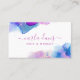 Cet élégant carte de visite présente un design unique d'encre d'alcool violet et bleu avec un magnifique script de calligraphie. Parfait pour les maquilleurs, les coiffeurs et autres professionnels de la beauté, cette carte ajoute une touche artistique à votre marque. Customisez-le avec votre nom et vos informations pour une touche vraiment personnalisée. Commandez les vôtres dès aujourd'hui !