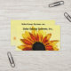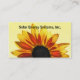 Ce carte de visite est une publicité pour une société d'équipement et d'installation d'énergie solaire. La façade est ornée d'un beau tournesol orange, jaune et or ouvert contre un arrière - plan jaune pâle. Tout le texte peut être customisé pour répondre à vos besoins professionnels.