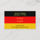 Un carte de visite moderne et élégant adapté à un professeur ou à un professeur de langue allemande indépendant. Ce design est doté d'un drapeau allemand et peut être customisé avec vos propres détails personnels. Couleurs noir, rouge et jaune pour représenter l'Allemagne.
