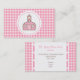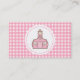 Un carte de visite avec un arrière - plan en vichy rose à garniture rose. Texte rose et marron. Personnalisez avec vos informations. Fonctionnalités latérales opposées correspondant à en vichy arrière - plan. Logo de The Pink Schoolhouse dans le cercle rose. Pour ajuster le texte ou pour modifier la taille, le style ou la couleur de la police, cliquez simplement sur "customiser!"