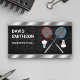 Élégant carte de visite à thème sportif avec un arrière - plan noir damassé et des accents d'acier brossé avec typographie moderne. Ajoutez votre nom et vos coordonnées pour faire une première impression durable.
