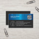 Electrician Electrical Contractor carte de visite est doté d'une ampoule électrique et d'une icône de boulon et d'un code qr (téléchargez votre propre code qr) sur une fausse texture métallique bleue. Idéal pour l'électricité, l'électricité, l'entrepreneur, l'électricité, l'entrepreneur, l'homme à main, la réparation de maison, la réparation de maison.