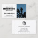Ce carte de visite de réparation de toiture et de toiture dispose d'un ouvrier sur un toit. Parfait pour le toit, toiture, toiture, réparation de maison, remodelage de maison, construction, entrepreneur, thèmes de services.