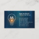 Le carte de visite de l'entrepreneur en électricité Monogram Electrician dispose d'une icône d'ampoule sur une texture métallique fausse bleue. Idéal pour l'électricité, l'électricité, l'entrepreneur, l'électricité, l'entrepreneur, l'homme à main, la réparation de maison, la réparation de maison.