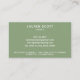 Un carte de visite professionnel pour une entreprise de nettoyage ou de nettoyage. Le recto de la carte comporte un graphisme de flacon aérosol et le nom de votre entreprise. Une esthétique moderne, épurée et minimaliste sur un arrière - plan vert sage. Les modèles de texte sont facilement customisés pour répondre aux exigences de marque et de marketing de votre entreprise.