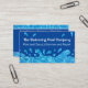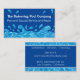 Ce carte de visite présente une image d'eau clignotante avec des vagues dans la partie inférieure et des éclaboussures venant de l'eau. Un exemple de nom de société ou d'entreprise est ajouté que vous pouvez personnaliser pour inclure votre propre nom ou message personnalisé. La partie arrière de la carte comporte une bordure arrière - plan de la même eau que l'avant et les coordonnées sur un arrière - plan bleu foncé. Il convient à une variété de professions, y compris l'entretien du plombier, de la piscine ou du jacuzzi, le lavage sous pression ou autre nettoyage, et le lavage de voiture.