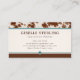 Professional western-style business card for equestrian trainers featuring a cowhide leather look. Designed to present your contact details with an authentic, rustic, and confident appearance suited for barns, ranches, and equestrian facilities. Ideal for training sessions, clinics, competitions, client meetings, and referrals. Editable text. Clean print-ready layout.
