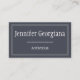 Ce design carte de visite épuré, minimaliste et simple est composé d'un arrière - plan gris foncé, d'une bordure à deux lignes avec une ligne pointillée entre les deux et d'une rangée de formes carrés. Il peut être utilisé par un professionnel tel qu'un esthéticien ou un maquilleur indépendant. Le nom, la profession et les coordonnées peuvent être personnalisés.