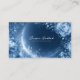 Define your brand with dramatic depth and ethereal mystery using this captivating business card. The design is dominated by a deep, monochromatic navy blue atmosphere that serves as a canvas for the glowing elements. A large, softly glowing circle or sphere of light dominates the center, surrounded by scattered white stardust and delicate light trails, creating a celestial, mystical aesthetic. The foreground is richly framed by abundant velvety roses and detailed foliage, all rendered in cool blue and silver tones that contrast beautifully with the dark background. This artwork beautifully captures the magic and elegance of a frozen, midnight garden, resulting in a unique and powerful brand statement. This business card is ideally suited for a spiritual advisor or mystic offering services centered on cosmic energy and depth, a luxury spa or wellness retreat promoting tranquil, cool-toned therapies, or an exclusive event stylist specializing in twilight or celestial celebrations. It would also perfectly suit a fine jewelry designer showcasing cool-toned or icy pieces, or a boutique candle maker whose products evoke complex, mysterious scents. The card's captivating combination of deep blue color and luminous floral artistry ensures it is versatile for any sophisticated announcement, a refined gift enclosure, or an elegant invitation.
