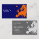Un carte de visite avec une carte de l'Europe. Détails de l'entreprise sur l'avant avec le nom et les coordonnées sur l'arrière sur une version en gris du dessin.