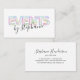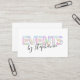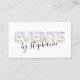 Des cartes de visite modernes d'organisateur de fêtes avec un arrière - plan blanc simple, le mot "EVENTS" dans un effet de ballon 3D irisé, et un modèle de texte professionnel qui est facile à personnaliser.