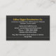 Un modèle de carte de visite pour la construction ou sociétés d'aménagement industrielles avec une photo d'une excavatrice de coupe-circuit sur le sol de emboutage plan du seau, sur un arrière - plan noir qui a l'effet du métal expulsé. L'avant a un modèle pour le nom et la position des employés, dans jaune et blanc, et sur l'inverse est l'espace pour des petits groupes de société également sur un arrière - plan noir. C'est sur le blanc coloré de carte qui peut être changé pour autres l'uns des.