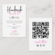 Ce design mignon et accueillant est parfait pour votre entreprise à la maison. Il comporte le slogan "Fabriqué à la main avec amour", un mignon coeur dessiné à la main, un message de remerciement, et des informations de contact avec un code QR à l'arrière pour vos clients à scanner afin de se connecter à votre site Web. Il comprend une typographie manuscrite et un simple code couleur noir, rose néon et blanc. ***REMARQUE DE CONCEPTION IMPORTANTE : Pour toute demande de conception personnalisée comme les produits correspondants, les modifications de couleur, les modifications de placement ou toute autre demande de modification, veuillez envoyer un message au concepteur. Vous pouvez même soumettre une demande pour un design entièrement personnalisé et nouveau.