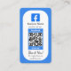 Cette carte facebook a la marque facebook bleu encadrant le côté avant et un fond bleu solide. Le front a le logo facebook en haut, votre nom d'entreprise, un avis nous appel à l'action message et un code QR pour lier votre facebook évaluation URL. Vous trouverez ci-dessous un bouton de balayage et un message de remerciement personnalisé en bas. Sur l'arrière, vous avez votre logo en haut et en dessous, toutes vos informations commerciales. En bas, il y a un message pour se connecter avec vous sur facebook avec votre nom d'utilisateur de page facebook. C'est une carte propre et simple qui a tout ce dont vous avez besoin ! C'est une carte d'évaluation et un carte de visite en un. Si vous avez besoin d'aide avec ce modèle, envoyez-moi un message et je vous aiderai volontiers. Merci, Sandy
