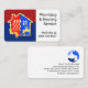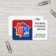 A red and blue layered (heat and water) cover features a gold home faucet-pipe frame design. To its right lies your business name and its contact details; Change the caption to the business name to suit your own service needs.