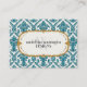 REMARQUE : Il s'agit d'un dessin imprimé plat. Il n'y a pas de parties scintillant réelle, de métal or ou de couches surélevées. PALETTE DE COULEUR : glitterie, bleu turquoise turquoise chatoyant, or et blanc doux. COLLECTION DE DESIGN : Les Cartes de visite correspondants, les détenteurs de cartes et les articles de papeterie supplémentaires sont parfaits pour un usage personnel ou professionnels et entreprises. Design graphique d'Audrey Jeanne Roberts, cette image à motif damassé de style moderne et vintage, au design floral décoratif, a un look de parties scintillant à la mode. Le cadre est un scroll et un point motif avec une influence Art nouveau ou art déco. Les damas, crémeux et crémeux, sont posés sur une couleur arrière - plan blanche crémeuse. Un cadre de style crochet a des pois et une bordure de type tourbillon de calligraphie. Il y a une large gamme de combinaisons de couleurs disponibles avec ce motif.
