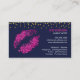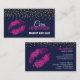 © 2018 Socialite Designs. Cartes de visite de maquillage astucieux qui comprennent des lèvres en faux parties scintillant rose chaud et des confettis à l'aspect doré. Rejoignez la foule avec cette carte de profil MUA amusante.