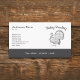 Un design carte de visite élégant et simple pour l'élevage ou la ferme en Turquie. La mise en page propre présente une illustration artistique d'une Turquie qui saisit l'essence de votre produit de spécialité. Le texte entièrement personnalisable vous permet de raconter l'histoire unique de votre ferme. Idéal pour les fermes familiales, les marchés alimentaires, les épiceries et les détaillants de produits alimentaires de première qualité ou tout simplement Thanksgiving !