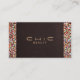 Cool image numérique réaliste de lin brun chocolat riche et confetti multicolore - comme la bordure motif parties scintillant. Un design élégant et élégant pour le consultant esthétique minimaliste. *Notez que c'est une image de textures, pas la vraie chose. Le stock de carte Premium est recommandé pour ce design particulier, étant donné la couleur foncée. Cela assurera un effet puissant et une durabilité de longue date contre les rayures de surface minuscules. Conception originale de Maura Reed.Idéal pour salons de beauté, spas, cosmétiques, esthéticiens, bijoutiers, assistants personnels, studios de danse, planificateurs de fêtes, boutiques d'accessoires, designers d'intérieur, coiffeurs et stylistes de mode, ou tout autre professionnel sensibilisé à l'image.