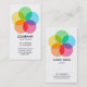 Un modèle de carte de visite élégant et attrayant, avec un motif abstrait géométrique composé de cinq cercles semi-transparents superposés en cinq couleurs différentes disposés autour d'un point central. Détails de l'entreprise principale sur le devant, avec nom et coordonnées personnelles sur le dos, avec le même motif et le même style.