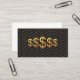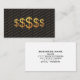 This striking financial advisor business card blends modern minimalism with a bold, premium focal point. A detailed gold dollar symbols sits centered on a black gray background, creating an immediate sense of value and professionalism. Behind it, the phrase FINANCIAL ADVISOR repeats in soft brown diagonal lines, forming a subtle, high‑end pattern that adds movement without overwhelming the design. The result is a sleek, confident card that communicates expertise, clarity, and trust at a glance — perfect for advisors who want a memorable, design‑forward presentation.