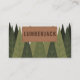 A business card with a forest of fir trees illustration and a wooden sign in the foreground. Perfect for carpenter, woodworker and lumberjack services (tree removal and pruning, firewood, stump grinding and more). It comes with full contact and list of services on the back!