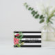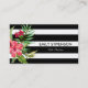 Bandes horizontales noires et blanches et fleur rose hawaïenne rose. Modèle de carte de visite personnalisable
