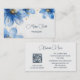 Ce carte de visite professionnel présente des fleurs d'aquarelle d'or bleu sur un arrière - plan bronzé. Elégant design adapté aux maquilleurs, spas, wedding planners, planificateurs d'évènements, cosmétologues, salon de beauté... avec un code qr scannable à l'arrière.