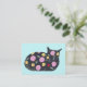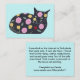 La peinture d'un chat noir pondu, décoré de fleurs et de plantes qui sont listés comme sûrs pour les chats à manger, est imprimée sur des cartes de visite. Les plantes comprennent la marguerite Gerber, le capucine, l'herbe céréalière et la chaudière, et ils sont imprimés sur le dos. Merci pour faire du shopping CherylsArt sur Zazzle.