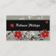 Carte De Visite Fleurs et silhouette rouges sur l'argent