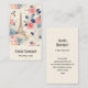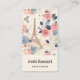 Carte de visite avec une belle motif à thème française. Jolies fleurs et une tour Eiffel et papillons. Les couleurs comprennent le rose, le bleu, la pêche et la crème.