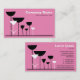 Un modèle de carte de visite avec un motif de fleurs de style moyen-siècle abstrait. Nom de l'entreprise et type d'entreprise etc sur le devant avec nom et autres détails sur le côté arrière avec le même motif de fleurs.