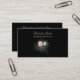 Une élégante carte de visite professionnelle à thème floral. Illustration de quelques délicates fleurs roses en fleurs avec des tourbillons verts et des feuilles sur un arrière - plan noir avec un peu de gris clair autour des fleurs pour accentuer et illuminer. Convient pour les entreprises florales / fleuristes et tous les autres qui ont un thème / logo fleuri.
