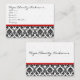 Carte De Visite Floral Damas noir et blanc avec ruban rouge
