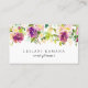 Les fleurs et la verdure modernes de l'aquarelle dans des tons vifs de violet, rose, pêche et vert avec des accents géométriques dorés sur le dos. Le modèle de carte professionnelle fournit plusieurs lignes pour vos informations, y compris le nom, le titre, le courriel, le téléphone et le site Web.