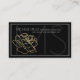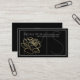 Un design sympa pour une carte de contact avec une fleur de rose en or avec un contour graphique sur un arrière - plan noir avec des initiales grandes et discrètes, et avec des champs pour le nom, la profession et le slogan