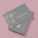 Une branche de fleur de cerisier dessinée à la main par un rose or / ligne rose vif avec un nom en élégante typographie manuscrite. Design moderne floral minimaliste sur un arrière - plan gris. Parfait pour le salon de coiffure d'artiste, les fleuristes et toutes les femmes entrepreneurs. Ajoutez l'adresse URL de votre site web pour créer un code QR et personnalisez avec vos coordonnées et informations sur les médias sociaux.