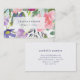 Ces magnifiques cartes de visite présentent un design coloré, plein de fleurs d'aquarelle vives. Roses, freesias et feuilles eucalyptus dans les tons rose, violet et vert se marient pour un look chic et tendance.