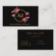 Une carte de visite élégante, féminine et moderne. Un fond noir chic, décoré d'un cadre géométrique et de fleurs en faux or, fleuris de bordeaux et roses. Personnalisez et ajoutez votre monogramme, nom, texte/titre sur le devant. Lettres d'or. Retour : arrière - plan noir et vos coordonnées. Parfait pour les femmes entrepreneurs, consultants, propriétaires d'entreprises, maquilleurs. Cette carte est également disponible dans notre magasin avec des icônes de médias sociaux sur le dos.