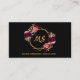 Une carte de visite élégante, féminine et moderne. Un fond noir chic, décoré d'un cadre géométrique et de fleurs en faux or, fleuris de bordeaux et roses. Personnalisez et ajoutez votre monogramme, nom, texte/titre sur le devant. Lettres d'or. Retour : arrière - plan noir et vos coordonnées. Parfait pour les femmes entrepreneurs, consultants, propriétaires d'entreprises, maquilleurs. Cette carte est également disponible dans notre magasin sans icônes de médias sociaux.