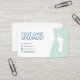 A professional business card for a foot care service featuring clean, medical-inspired typography, and a stylized foot silhouette appears in soft teal on right side. Perfect for podiatrist, pedicure, reflexology, massage, etc.