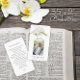 Orchidées blanches élégantes, une photo et les détails de votre célébration de la vie sur le front et la prière du Seigneur, ou toute prière, sur le dos. Beau à inclure à un enterrement, service commémoratif, anniversaire de mort ou dans des notes de remerciement. CORRESPONDANCE d'objets dans notre collection.