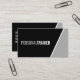 Carte de visite de formation personnel en noir et blanc en gras avec des informations en caractères gras sur arrière - plan noir avec bordure latérale en diagonale blanche et grise. Idéal pour entraîneur personnel, entraîneur d'instructeurs de fitness et de nombreuses autres professions.