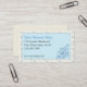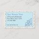 Un carte de visite pour l'industrie de soins de santé avec dessin au trait de travailleur social et de patient dans le fauteuil roulant sur l'arrière - plan bleu avec la frontière florale bleue.