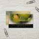 Un carte de visite professionnel conçoit une photo délicieuse d'une paire de pommes encore sur l'arbre, nichée au milieu de leurs feuilles verts. Les gouttes de pluie recouvrent leur peau. Les pommes mûrissent et offrent un joli mélange de tons allant du vert vif à l'orange et au rouge. Une photo de nature fraîche avec une bordure molle brumeuse lui donnant une qualité rêveuse. Parfait pour les entreprises telles que vergers, fermes, marchés agricoles etc...