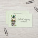 Business cards with a cute St. Patrick's Day image. A green frog with big cartoon eyes sitting on a stone wall. Wearing a green top hat with a shamrock and a little friend sitting on top of his hat.